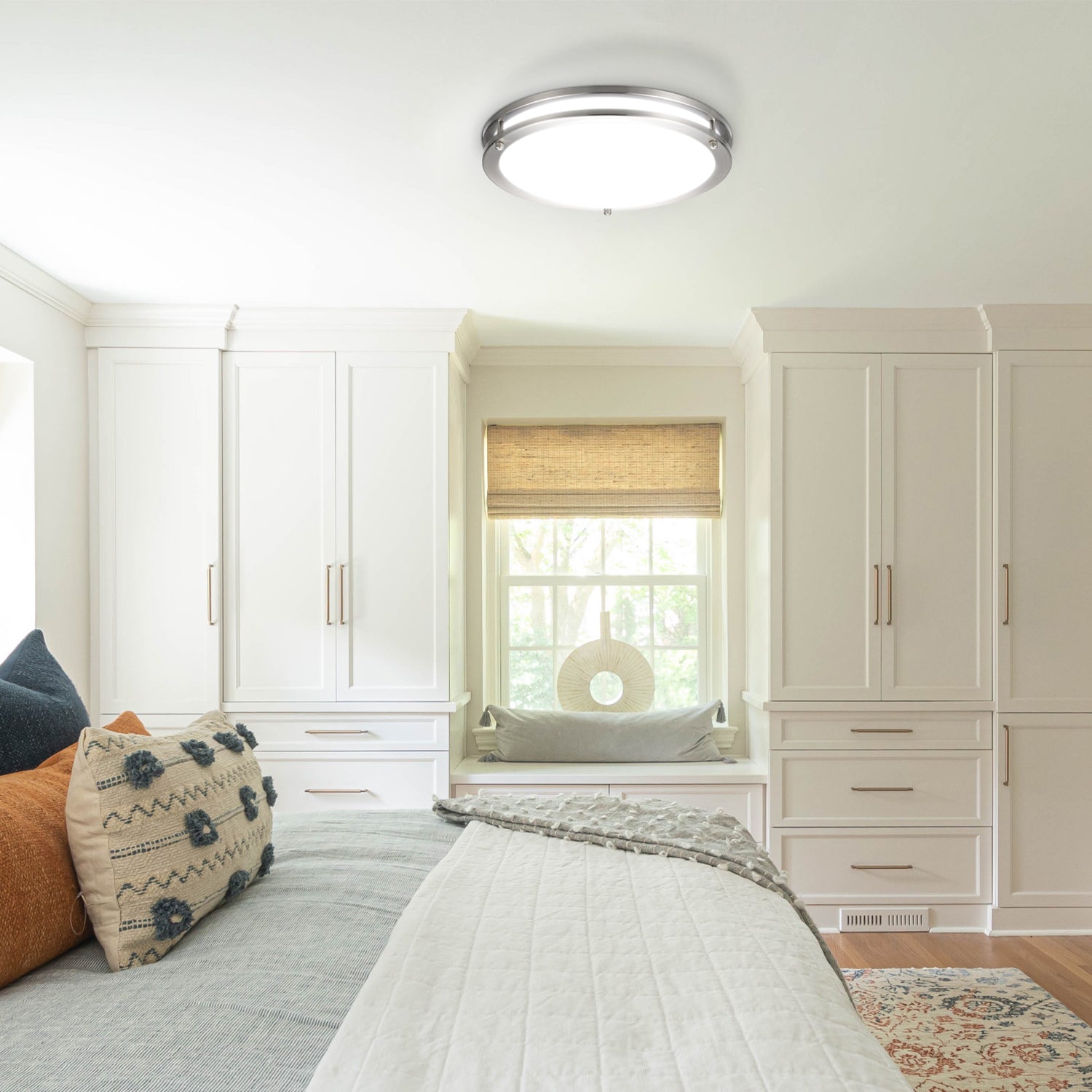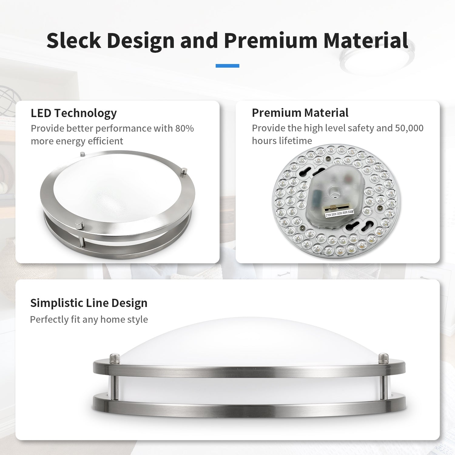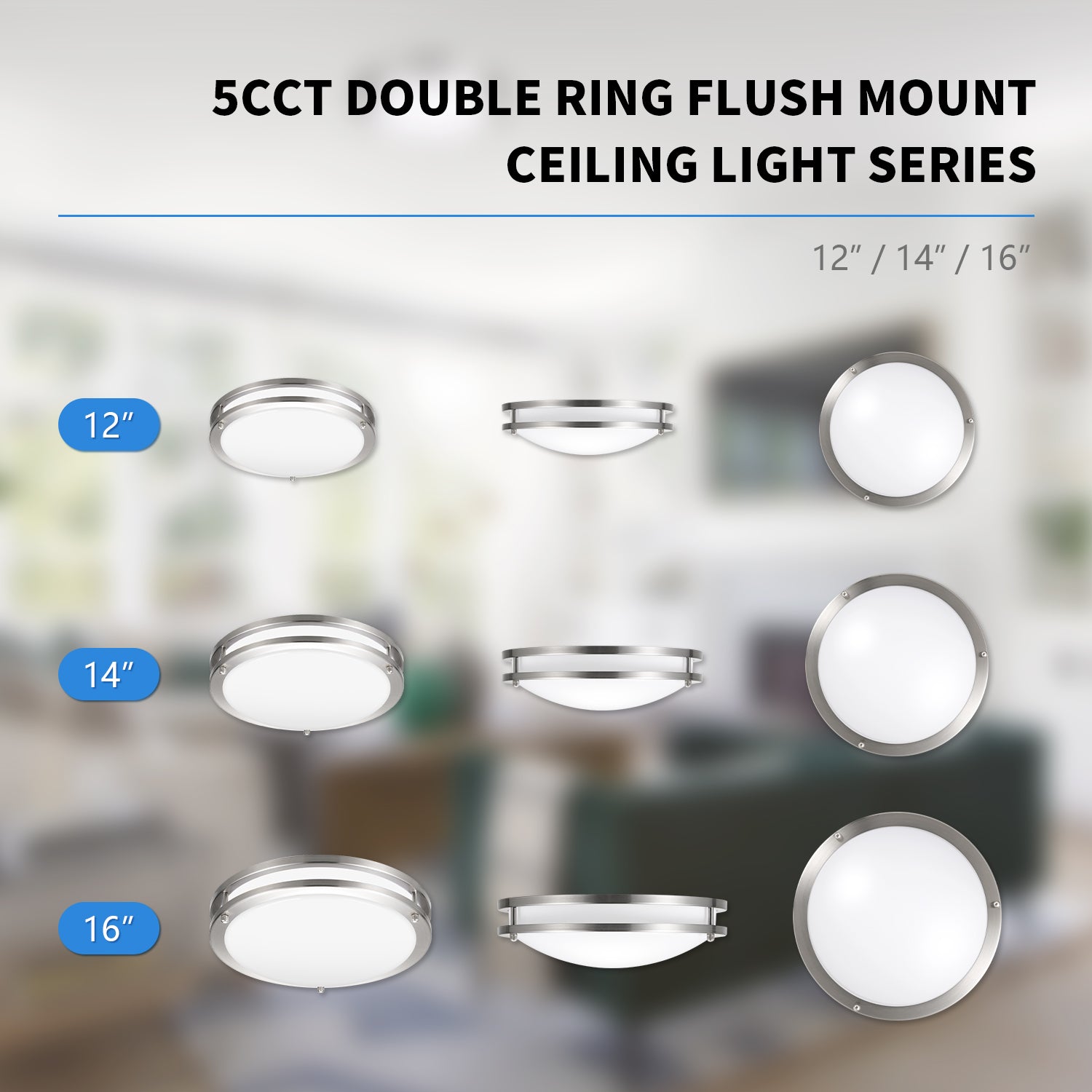 The 5CCT Double Ring Flush Mount Fixture brings you a modern ceiling lighting solution. You can choose the color temperature from 2700K soft white, 3000K warm white, 3500K neutral white, 4000K cool white and 5000K daylight by using the CCT switch on the back of the fixture easily. Fits all your need for the environment light.